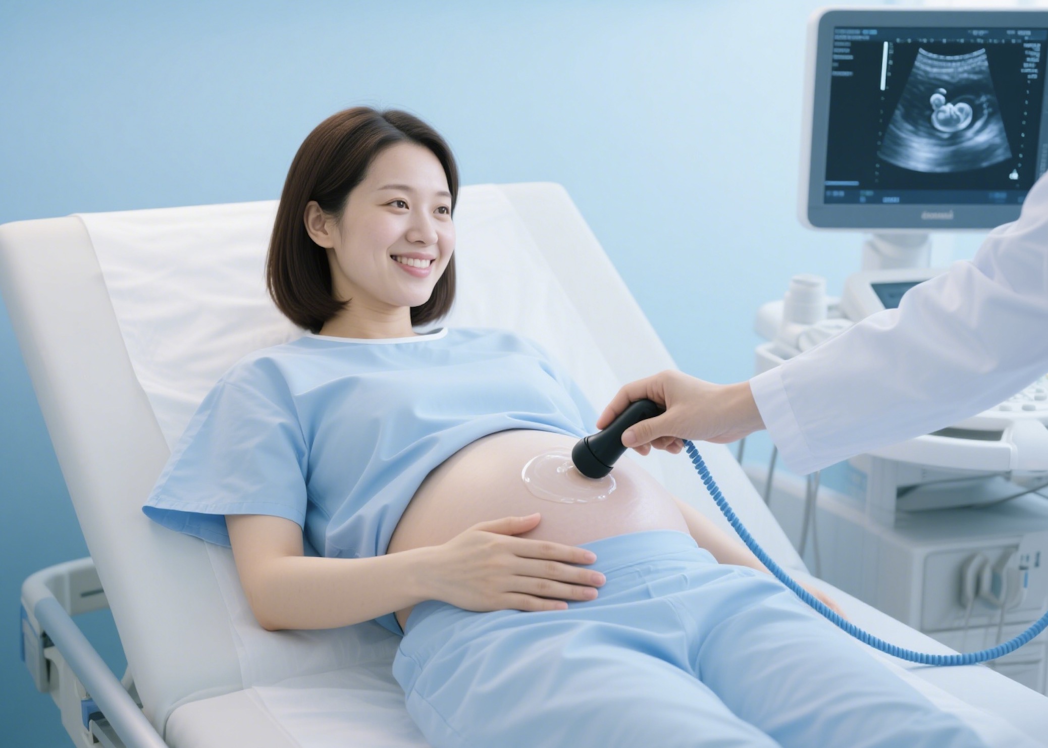 NT检查(孕11~13周):通过B超测量胎儿颈后透明层厚度,早期预警染色体异常(如唐氏综合征)。